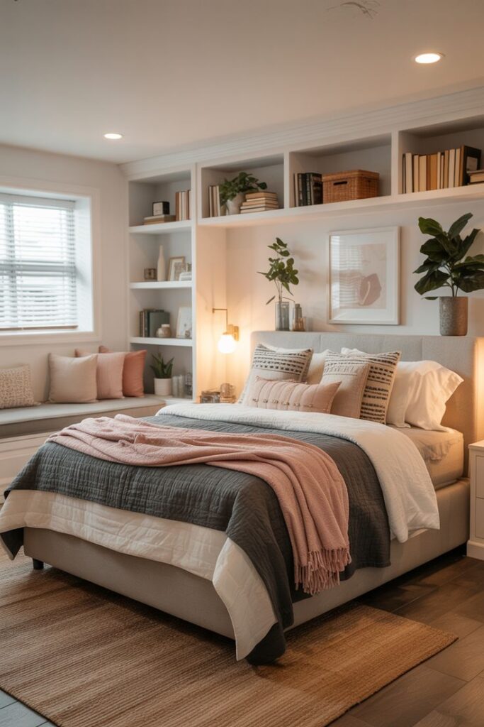 - Throw pillows and textured blankets bring softness