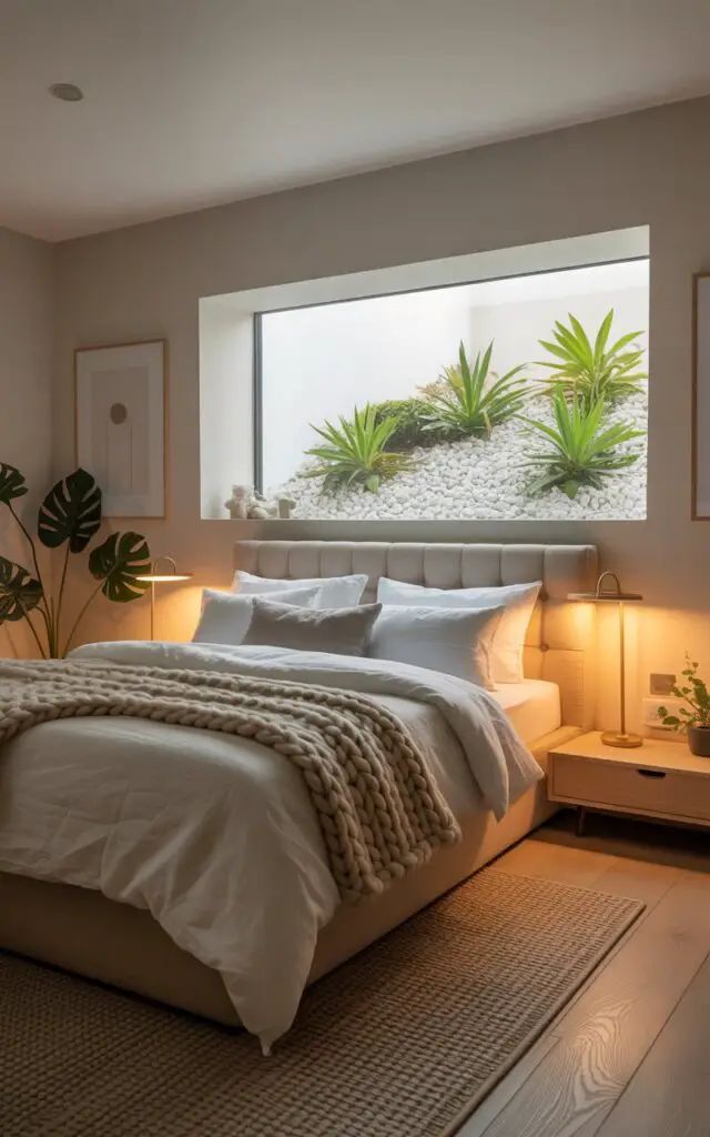 - Minimal clutter keeps the room calm