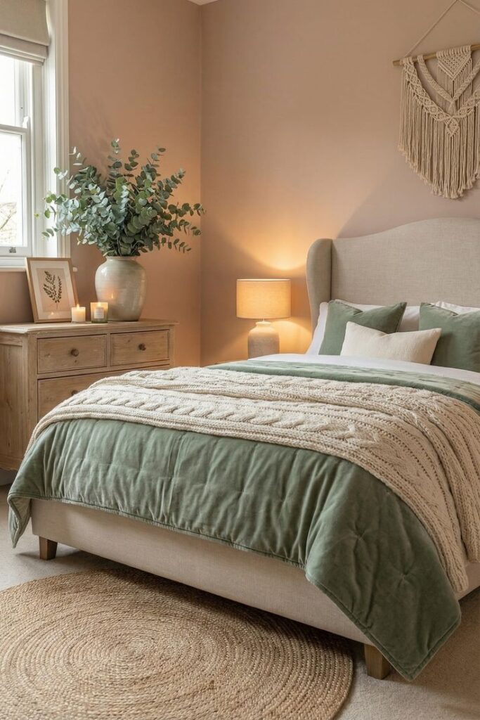 - Cozy: warm taupe, terracotta, caramel, deep greens