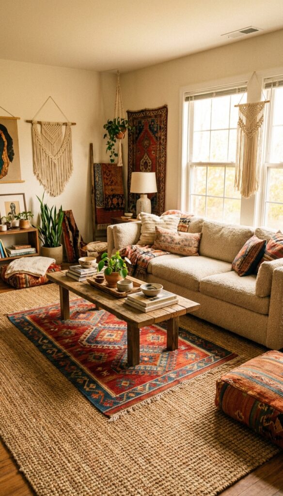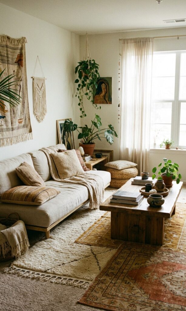 Here’s the truth—boho living room decor looks best when it feels unfinished. I used to overthink every corner, and the room felt stiff.