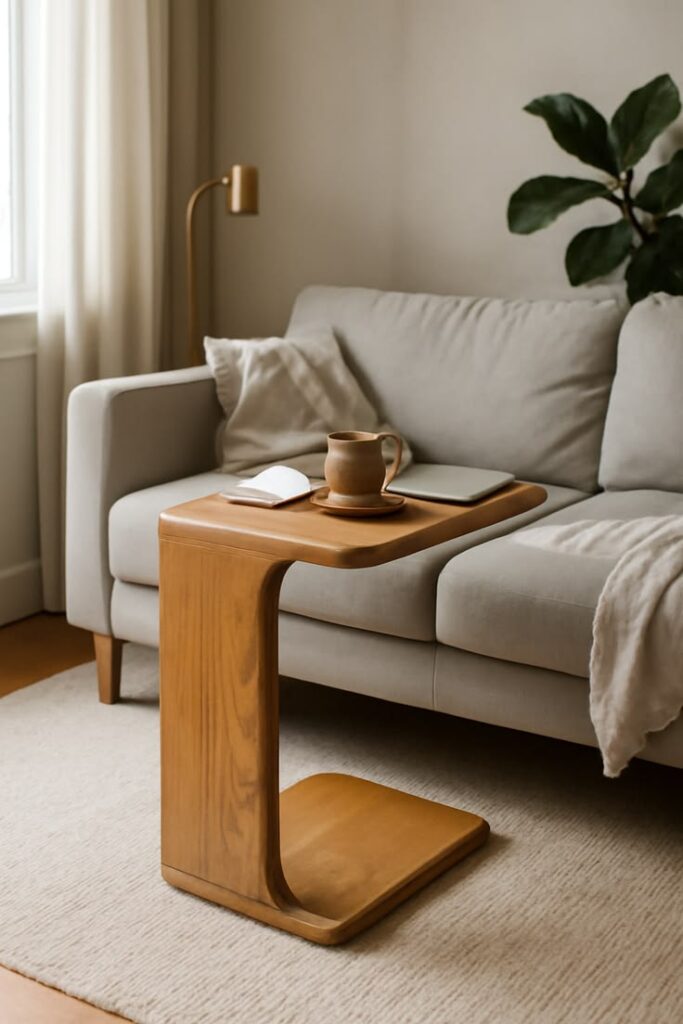 The chaise seat often feels left out. People sit there, then they hold their drink like they fear commitment. A C-table fixes that by sliding under the sofa and hovering right where you need it.