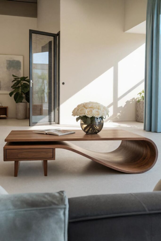 10) Waterfall or Open-Base Coffee Table: Airy Style for Heavy Sectionals