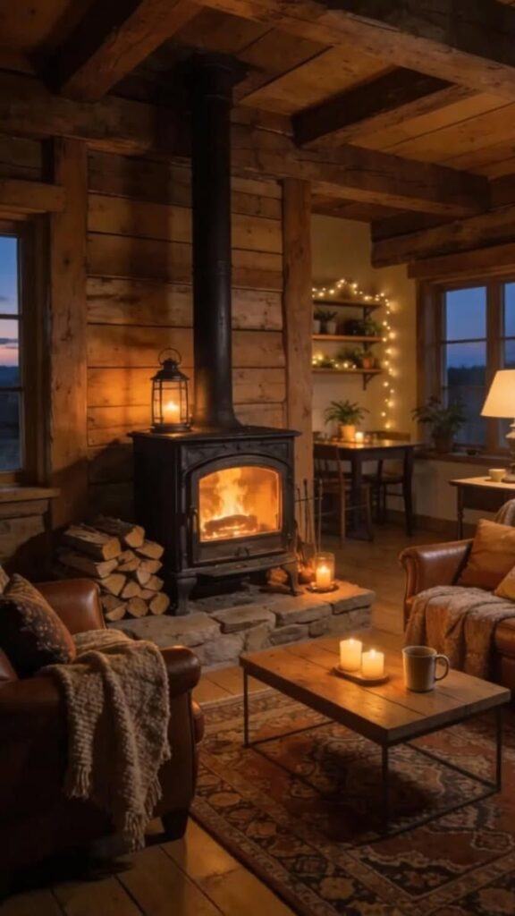 Cabin lodge style brings that “weekend getaway” energy right into your living room. I build this look with plaid, leather, warm woods, and chunky layers. You can practically hear a fireplace crackle, even if you only own a space heater.