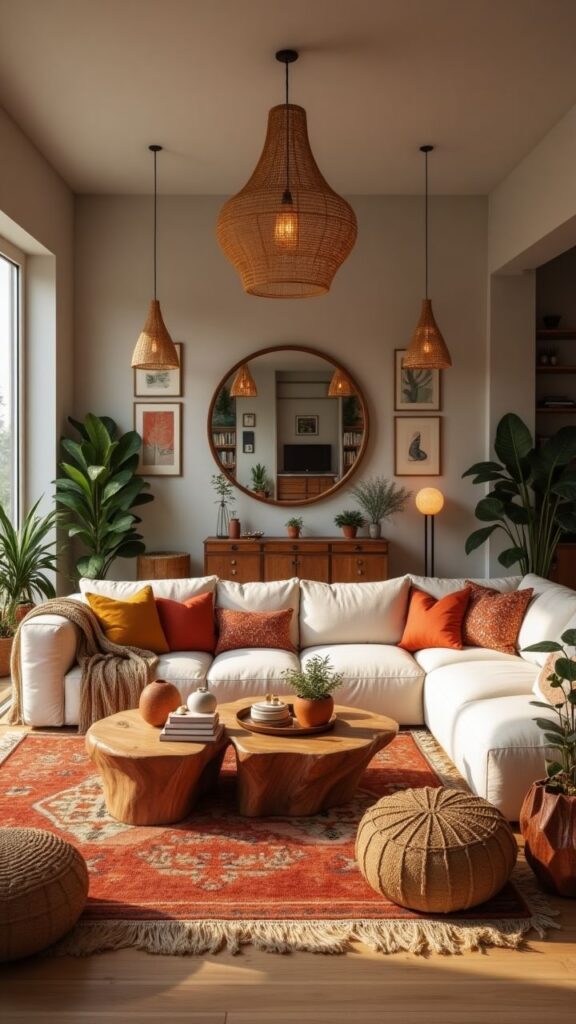 Earthy boho fall gives you cozy comfort with a laid-back edge. I use terra-cotta, clay, mustard, olive, and warm browns, then I pile on texture. This aesthetic makes your space feel inviting because it looks lived-in in the best way.