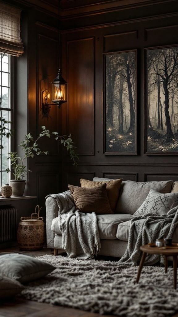 Moody academia feels like old books, rainy afternoons, and the urge to write in a journal you definitely won’t finish. I love it for fall because it leans into deep, cozy color and warm lighting. Do you want your living room to feel like a candlelit library? Same.