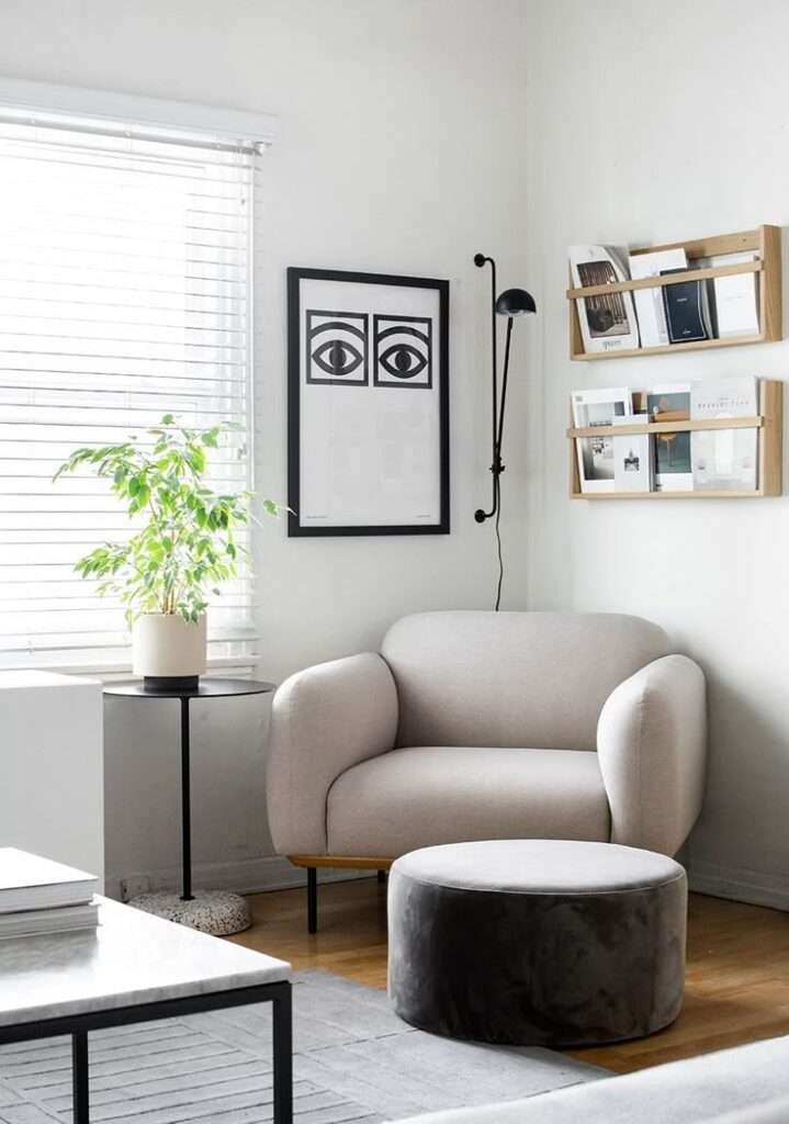I once turned an awkward empty spot into my favorite place by adding a chair and a tiny table. I now sit there and pretend I live in a Nordic design catalog 🙂
