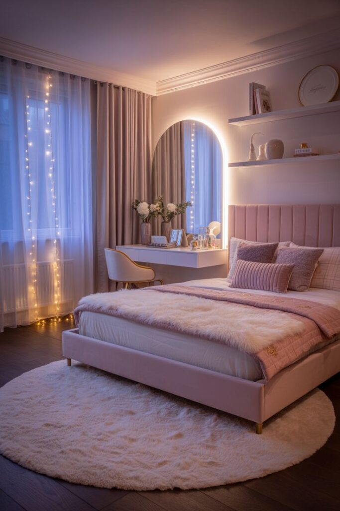 - Chill/hobby zone → corner for reading, makeup, art, etc.