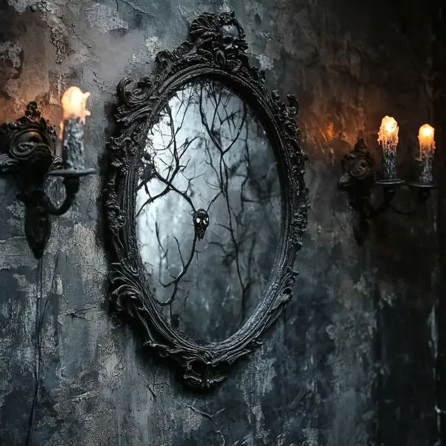 Next, tape a printed photo of a ghostly face or old portrait behind it. Hang it up and wait until your guests walk by. Their reflection + that ghostly image = instant chills.