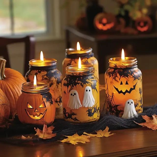 You can even wrap them in orange tissue paper for texture. Drop in a flameless candle, and you’ve got a reusable pumpkin lantern—no rot, no mess, just pure Halloween magic.