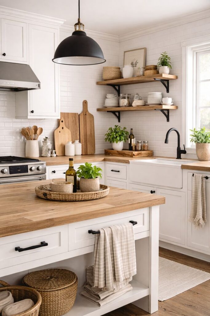 1) Nail the “warm wood + crisp white” modern farmhouse balance