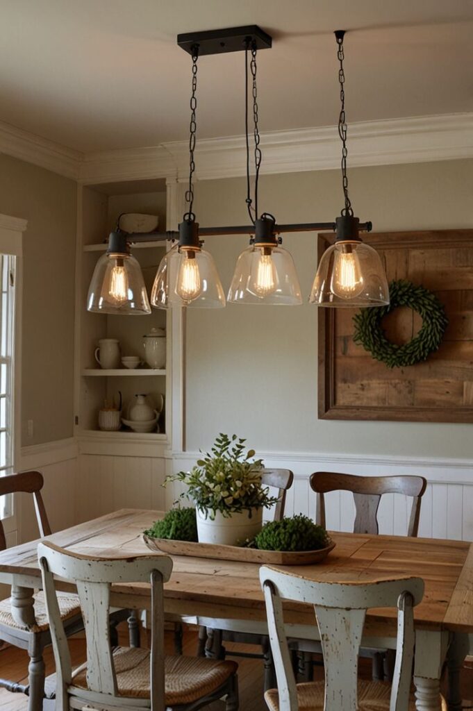 Lighting makes or breaks your farmhouse dinning room concept. I mean it. A sad overhead fixture can make your food look like a science project, and nobody needs that.