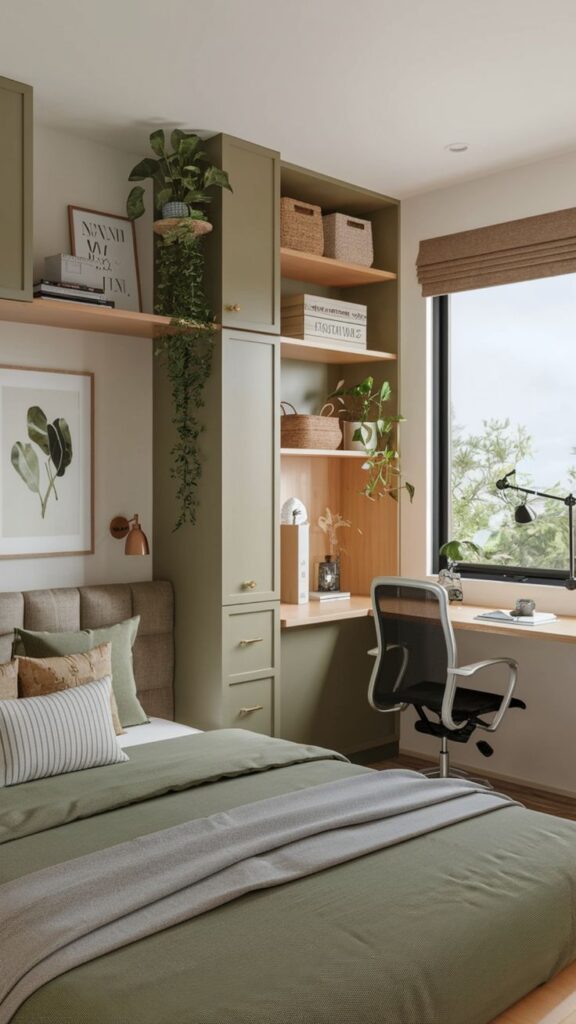 Small bedroom ideas live and die by vertical storage. Walls give you “free” space, and your floor needs all the mercy it can get.