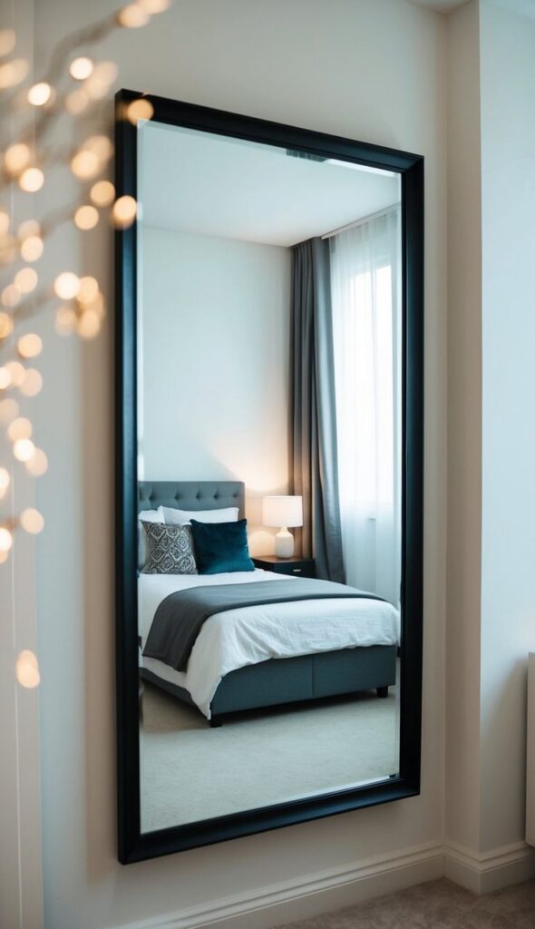 Mirrors work because they bounce light and create depth. They help you make a small bedroom look bigger without moving a single wall.