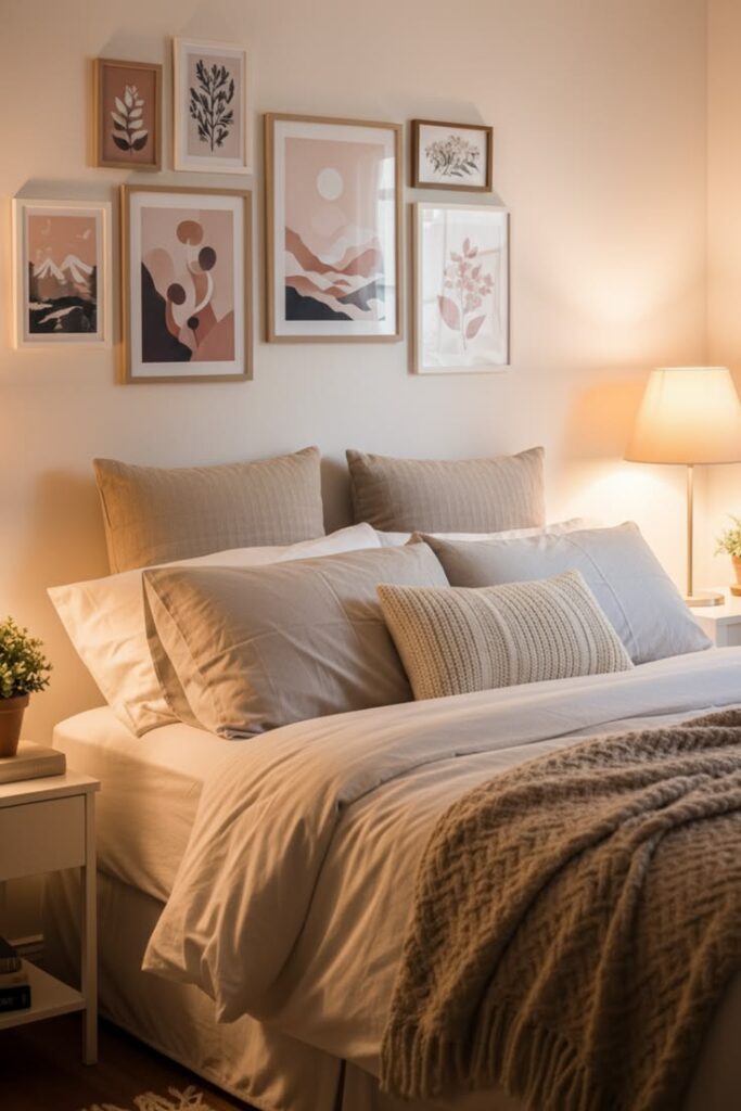 Small bedrooms can’t handle twenty tiny decorations screaming for attention. Larger, simpler pieces create calm because they read as intentional.