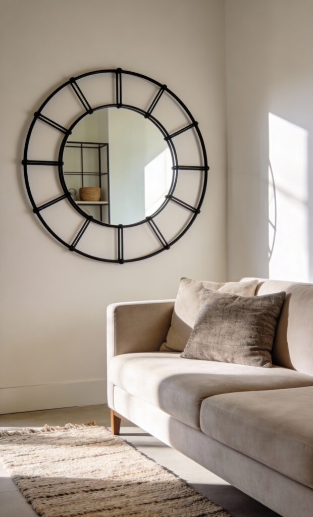 I once hung a big black-framed round mirror over a very basic grey sofa, and people suddenly assumed I hired a stylist. I absolutely did not.