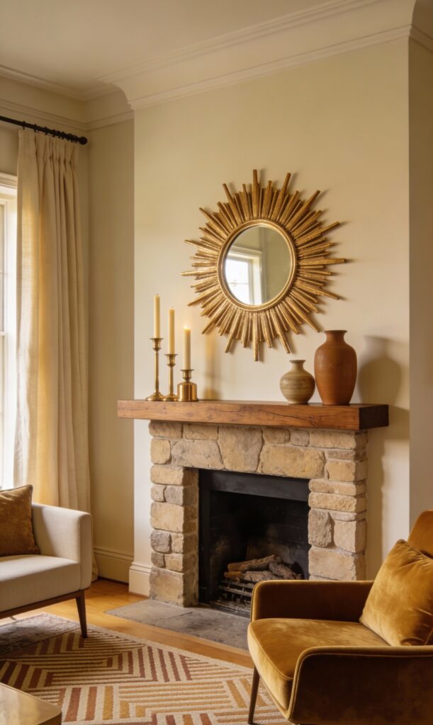 If your mantle feels boring, you fix it fast with a bold sunburst.