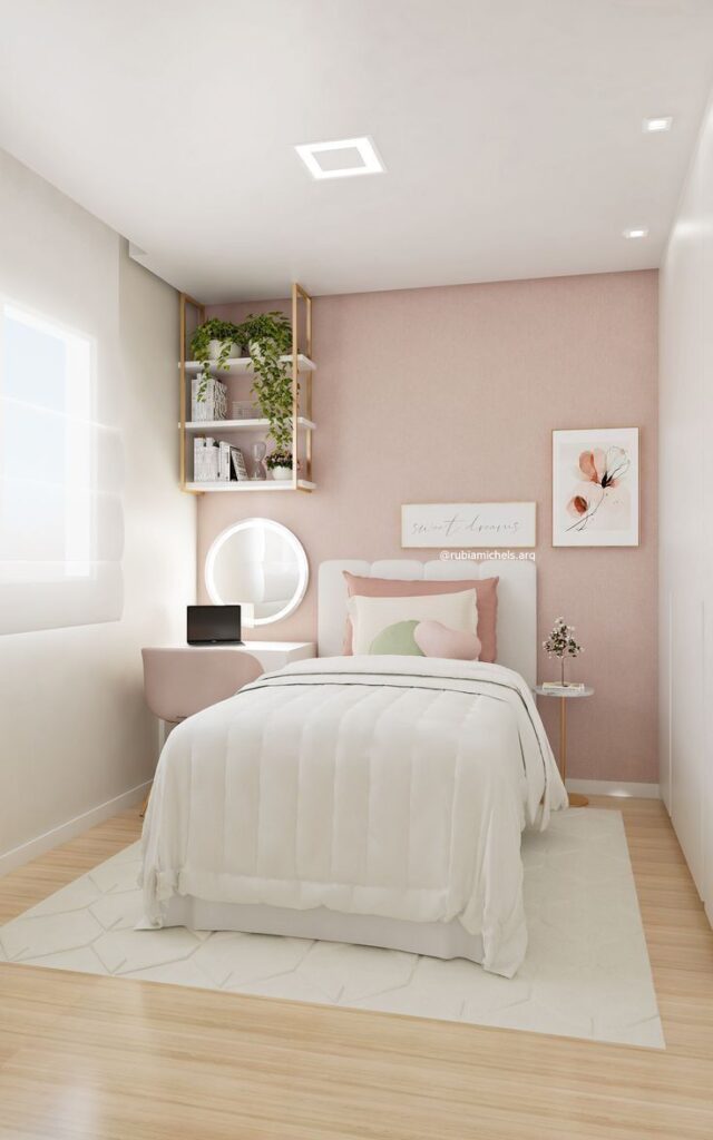 • Design tip: add contrast with matte black hardware or deep navy decor