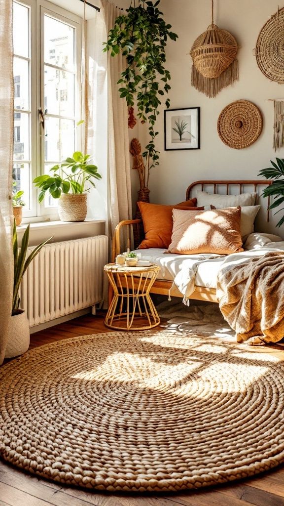 A rug makes a minimalist boho bedroom feel finished, and it adds softness that helps the room feel restful. Choose a natural fiber rug like jute for texture, or pick a low-pile patterned rug in muted tones for comfort. I love jute, but I also admit it can feel scratchy if you walk barefoot a lot. Do you want texture, softness, or a mix?