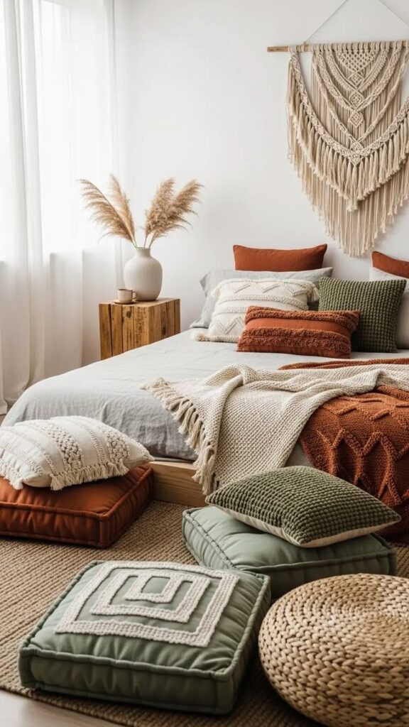 Boho style loves texture, and minimalism loves restraint. You can make them get along if you layer fabrics with a plan. Think linen duvet, cotton sheets, and one throw blanket that you actually use. Why stack five throws on the bed if you only touch one?