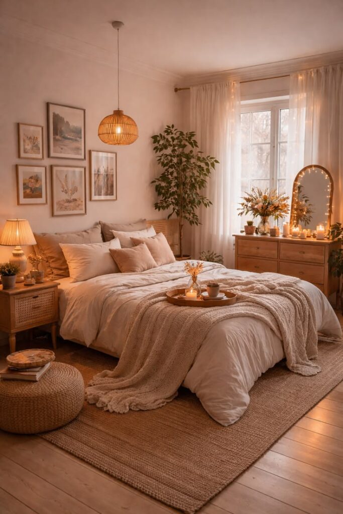 You can pull off a minimalist boho bedroom without sacrificing coziness or personality. You just need warm neutrals, natural textures, smart storage, soft lighting, and a few intentional statement pieces. You keep the room calm by controlling visual noise, and you keep it boho by choosing materials that feel warm and lived-in.