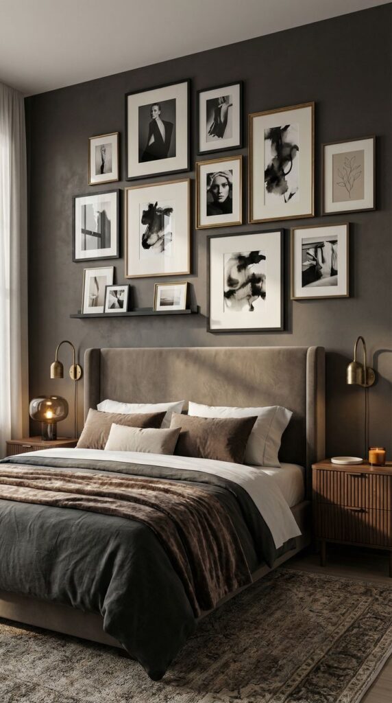 - Add one warm-toned print to stop the wall from feeling flat