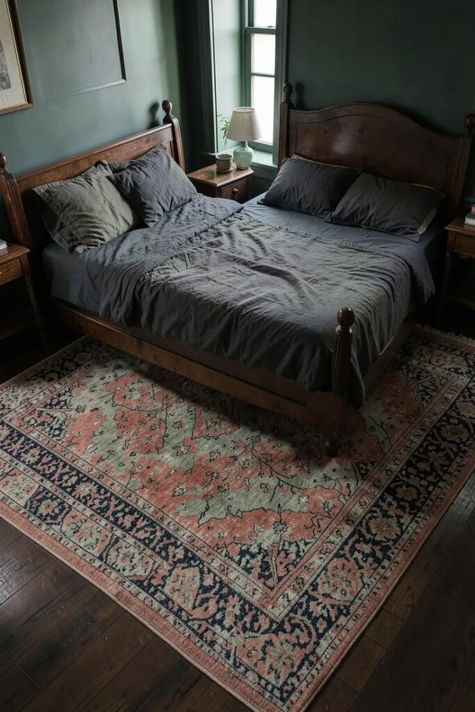 A rug can carry the whole dark boho vibe, even if everything else stays basic. I once dropped $40 on a beat-up vintage-style rug, and it made my cheap bed frame look suspiciously grown-up. Why does a rug change everything so fast?