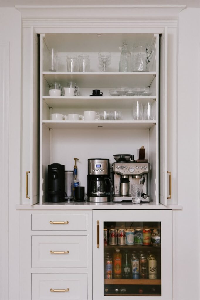 11) Hide a full coffee bar inside a cabinet or pantry