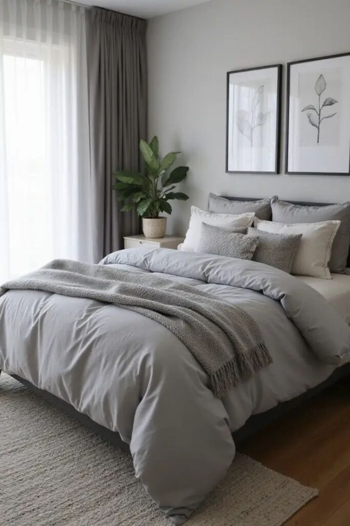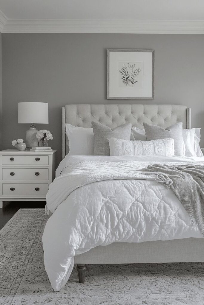 Grey plus white creates that “fresh sheets, quiet mind” energy. Do you want your bedroom to feel like a boutique hotel without the $18 mini water bottles? Same.