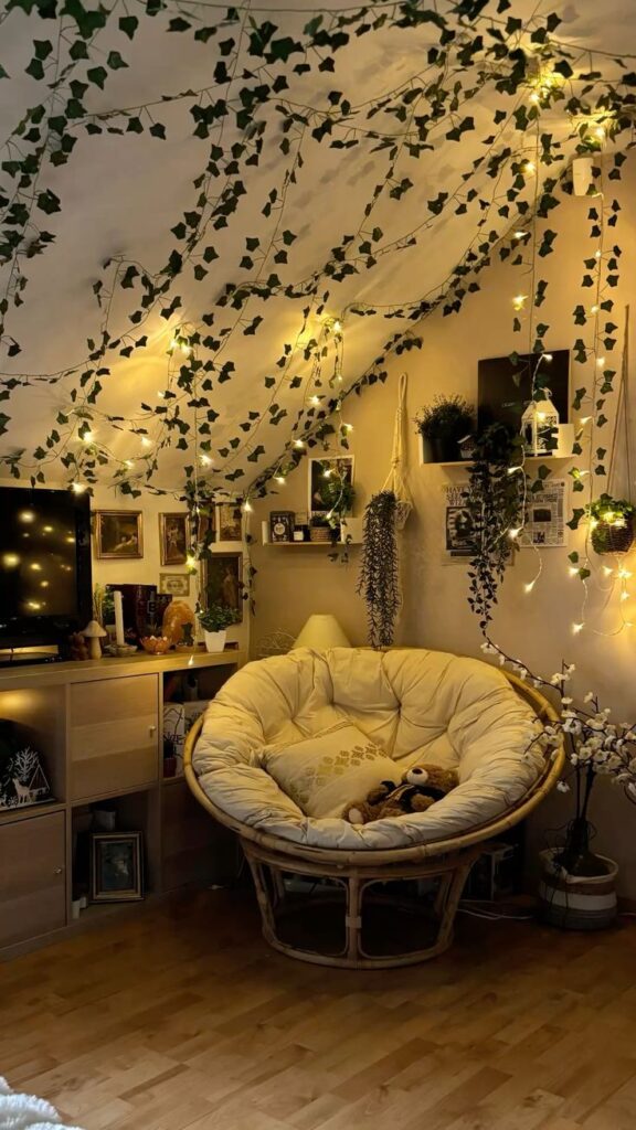 I like a warm lamp by the bed, a smaller lamp on a shelf, and some soft string lights for glow. You’ll feel the room shift instantly.