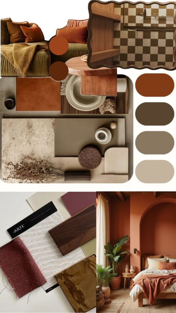 6) Sand + Terracotta + Dark Walnut (Warm Luxury Without the Fuss)