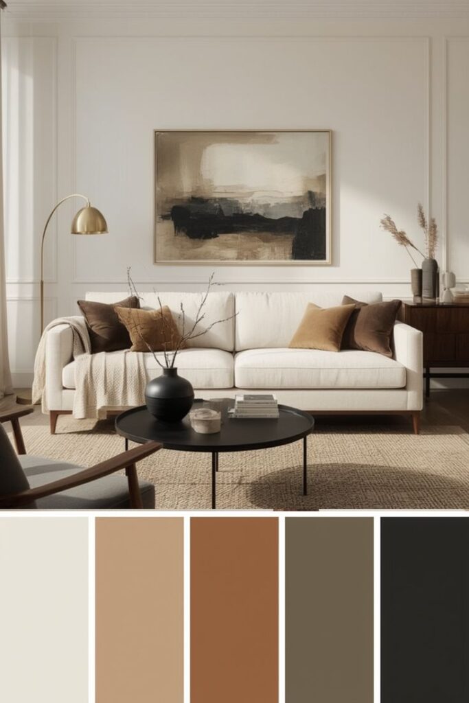1) Cream + Charcoal + Brass (Classic Rich Energy)