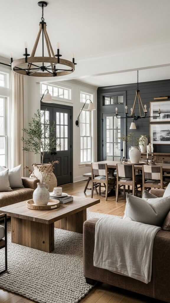 IMO, this palette works best when you keep black details consistent. If you mix black + oil-rubbed bronze + chrome, your room starts to look like a hardware store display.