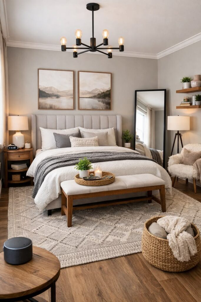 You skip the “gallery wall of 27 frames” in the bedroom, unless you love visual noise (and you probably don’t, or you wouldn’t read this).