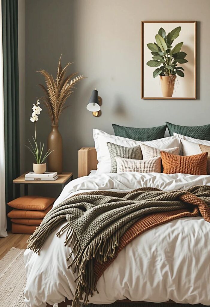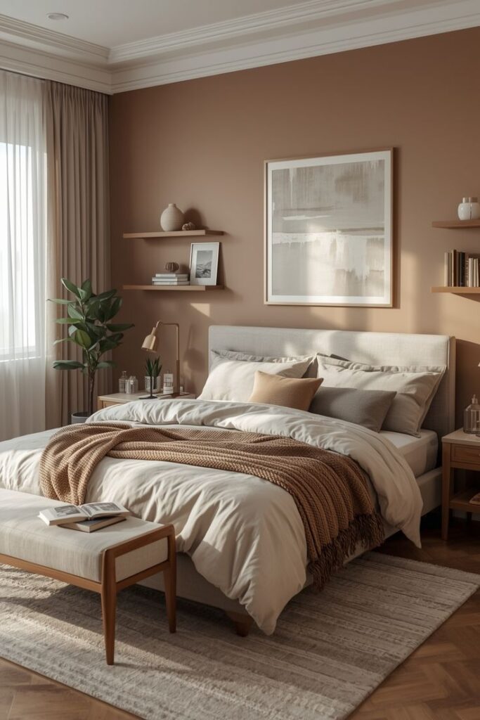 So which one will you try first: the terracotta accent wall, the sand-layered bed, or the rug combo that makes your room look weirdly expensive? Pick one, commit for a weekend, and enjoy that calm, grounded vibe—because your bedroom should feel like a reset button, not a storage unit with pillows.