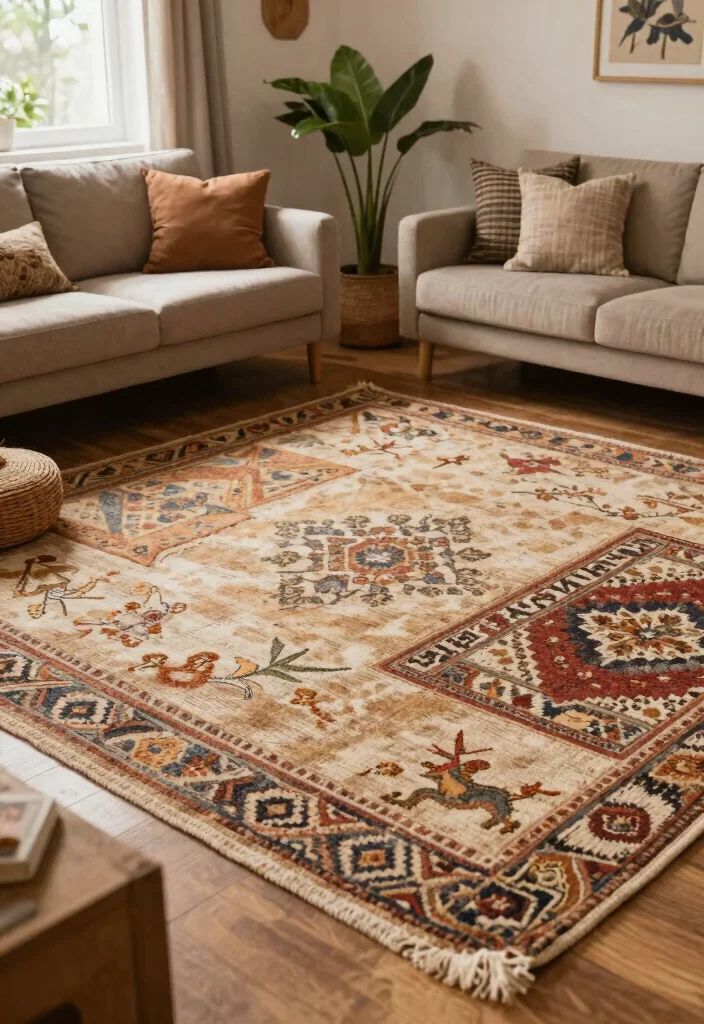 10) Layer Rugs: Jute + Vintage-Style Kilim for Instant Depth