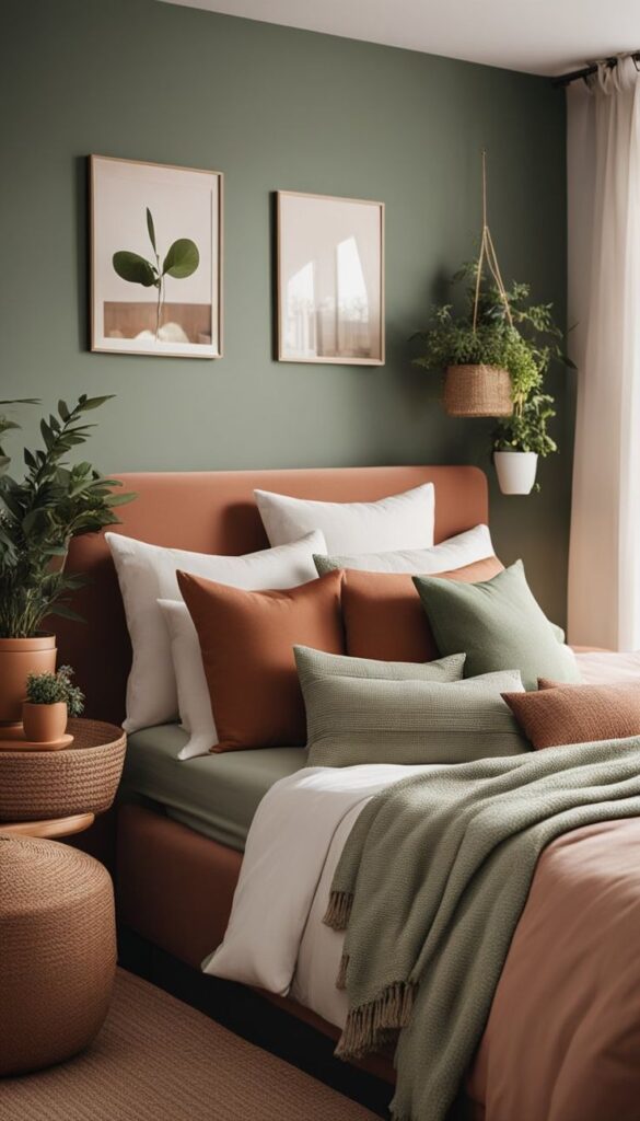 Keep the other walls in warm white or soft sand so the terracotta reads modern, not heavy. I once went too dark with terracotta in a low-light room, and my bedroom looked like it planned to host a medieval feast.