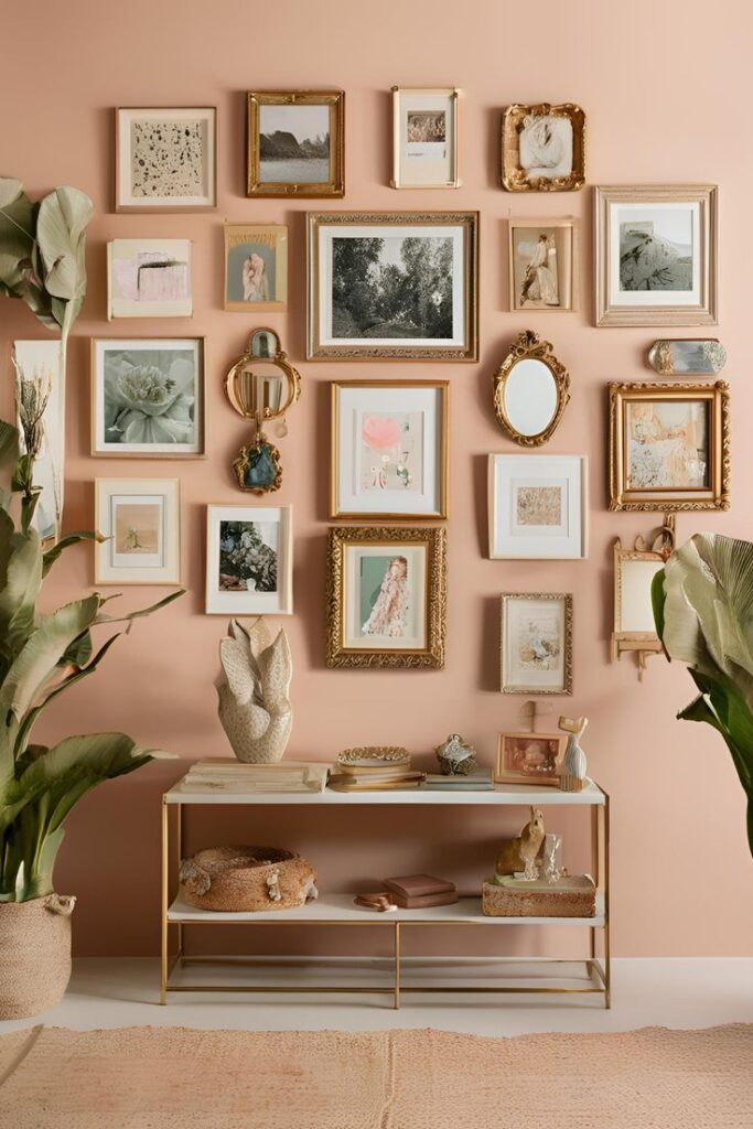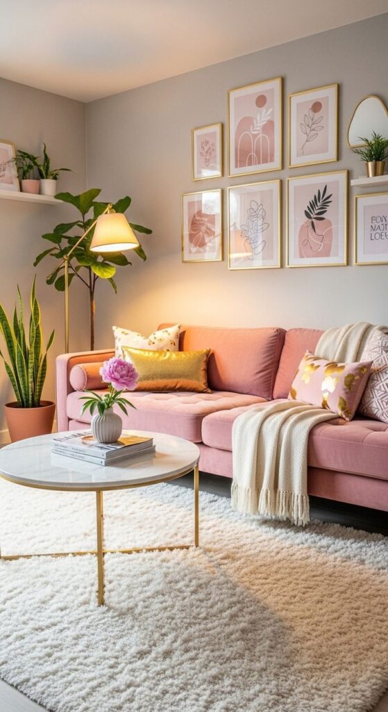 7) Use a Pink Gallery Wall to Add Personality Without Taking Floor Space