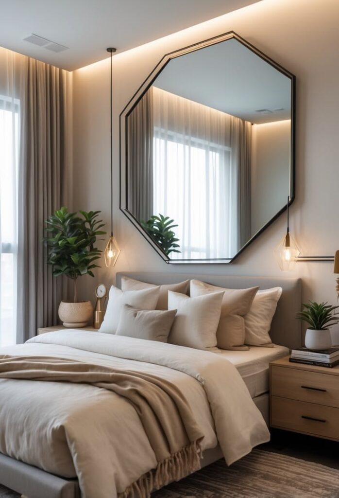 Mirrors work like magic for small spaces. They reflect light, open the room, and make corners feel less gloomy.