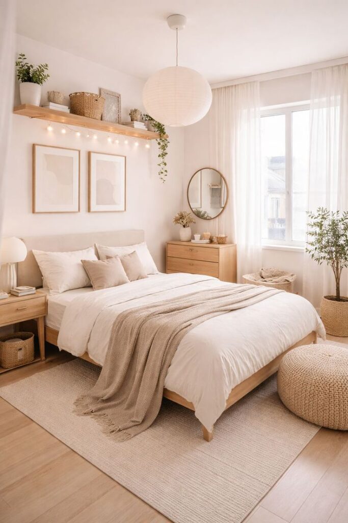 Bedding changes the vibe faster than almost anything because the bed takes up so much visual space. When I swap to crisp white sheets and add a textured throw, the room instantly looks cleaner and calmer.