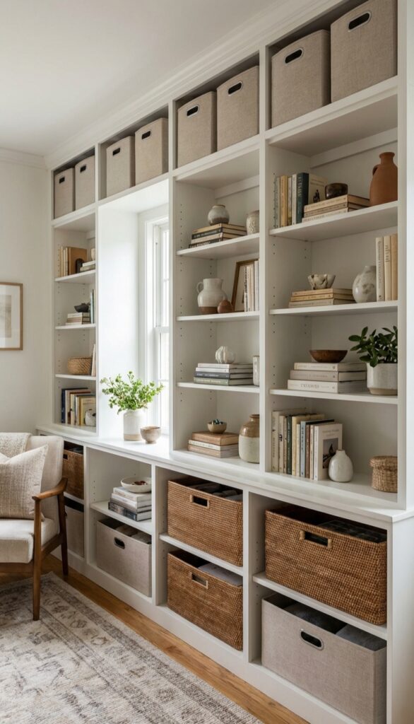 When floor space is limited, your walls are your new best friends. Floor-to-ceiling shelving isn’t just for libraries; it’s a small-space lifesaver.