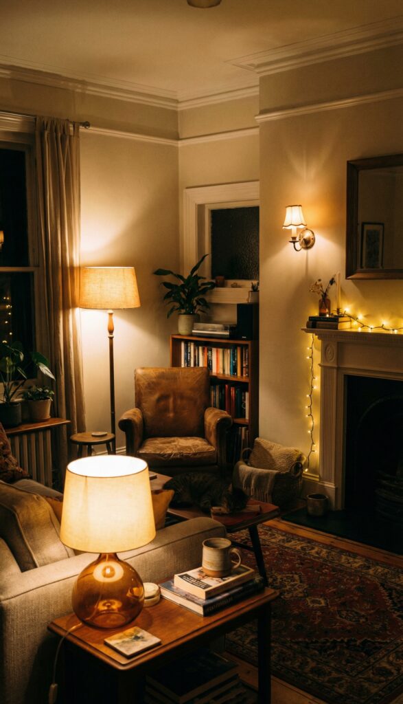 Create a lighting “triangle” with three sources: ambient (your main light, maybe on a dimmer), task (a floor lamp by a reading chair), and accent (wall sconces or small table lamps). This distributes light evenly, eliminates dark corners, and makes the room feel dynamic and larger. Ditch the big lamp shades for sleek, upward-facing lights to keep sightlines clear.