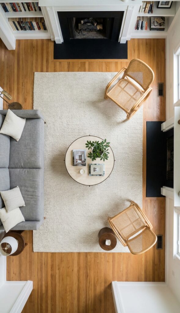 Here’s a common mistake: using a tiny “postage stamp” rug in the middle of the room. It actually makes the space feel smaller and disjointed.