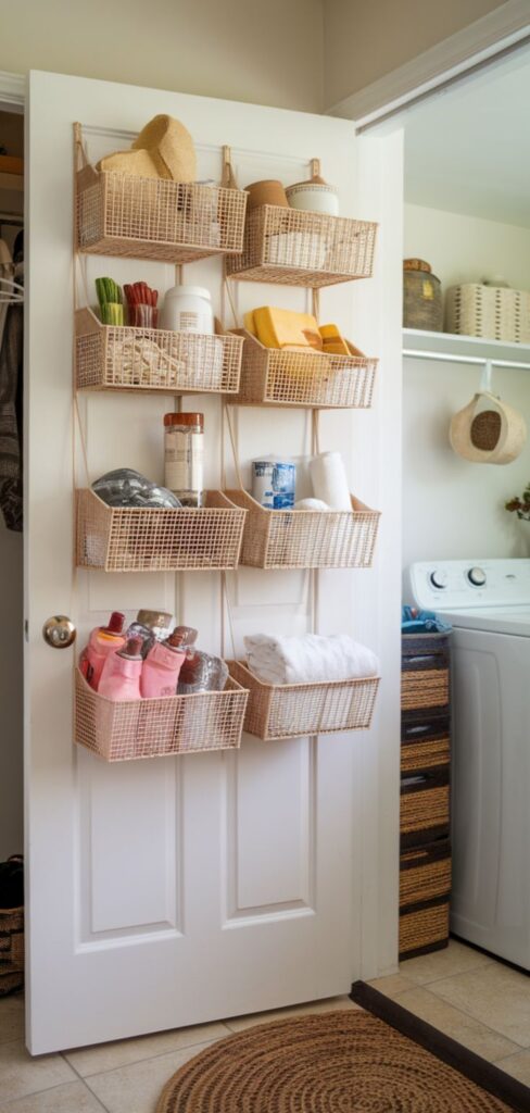 People ignore doors like they don’t count as square footage. I treat the laundry room door like extra wall space that opens and closes—very futuristic, I know. Add an over-the-door organizer for small items that usually clutter shelves.