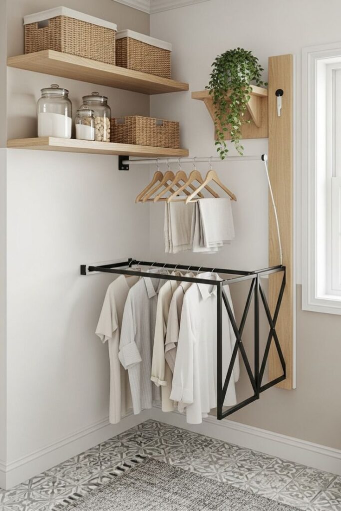 This trick works especially well in compact laundry rooms where you need every inch. I’ve hung delicates, air-dry shirts, and even damp cleaning cloths without turning the room into a drying jungle. Why trip over a rack when you can just… not?