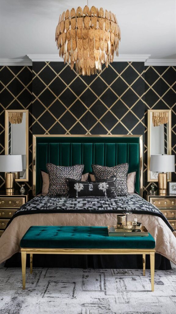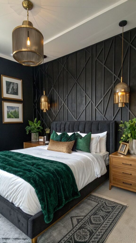 So, which idea will you try first: the emerald-and-black trim moment or the black velvet headboard power play? Either way, you’ll end up with a bedroom that looks expensive enough to make your laundry pile feel slightly embarrassed.