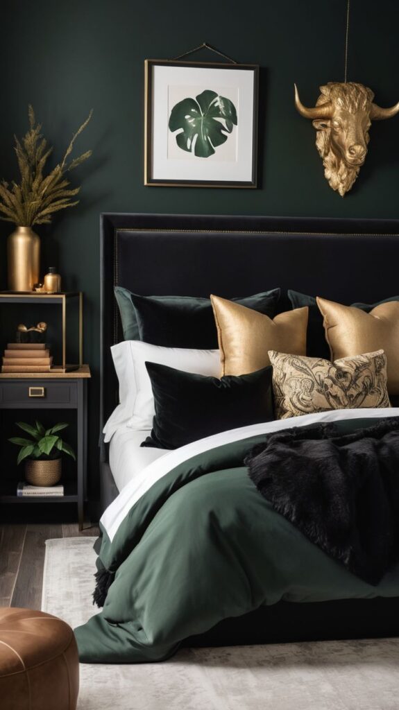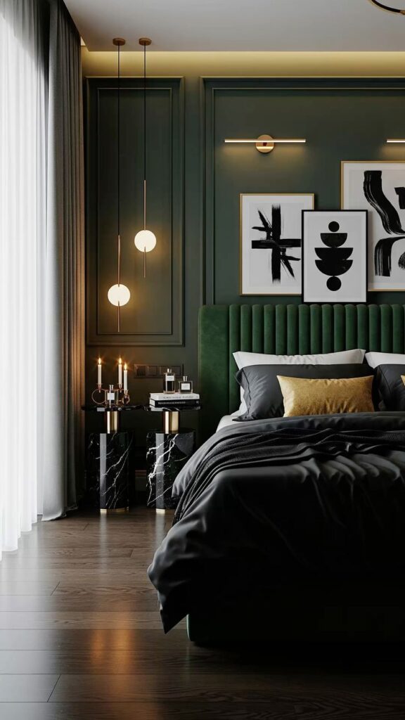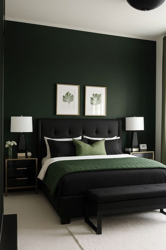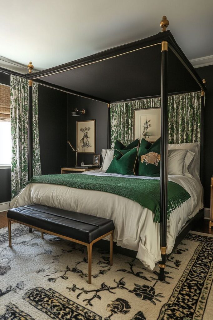 You can build a luxe green and black bedroom with the right mix of contrast, texture, and warm lighting. Start with one high-impact move—like emerald walls, black velvet, or bold curtains—then layer the rest so the room feels collected, not chaotic.
