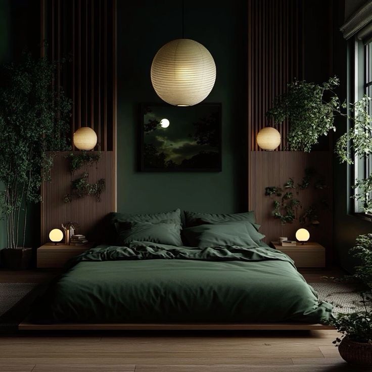 - Paint one wall deep green behind the bed