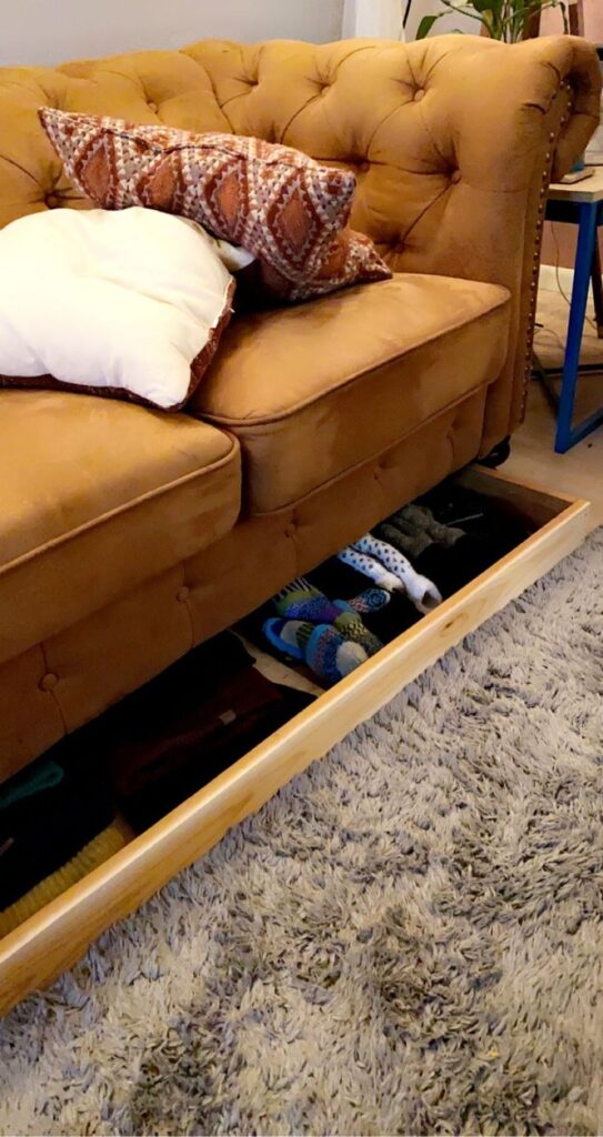 6) Slide Rolling Bins Under the Sofa (Your Couch Can Work Too)
