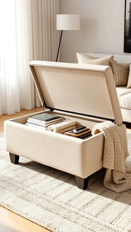 A storage ottoman gives you a footrest, extra seating, and a hidden stash spot. You can throw remotes, chargers, or blankets inside and keep your living room tidy in seconds. I also love the “close the lid and pretend the mess never happened” vibe, because who doesn’t?