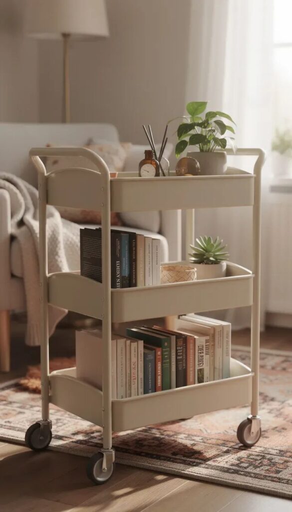 Choose a cart with locking wheels so it stays put. You want “smart storage,” not “wandering furniture.”